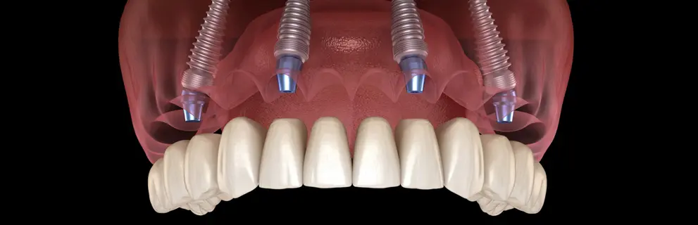 A menudo, el paso del tiempo y la ausencia de piezas hacen que el hueso se retire, especialmente en las zonas posteriores de la boca. Antiguamente, esto obligaba a largos procesos de injertos. El All on 4 cambia las reglas del juego: utilizando solo cuatro implantes de titanio colocados estratégicamente (dos de ellos inclinados para aprovechar el hueso existente), logramos un anclaje tan sólido que podemos fijar una dentadura completa de inmediato.